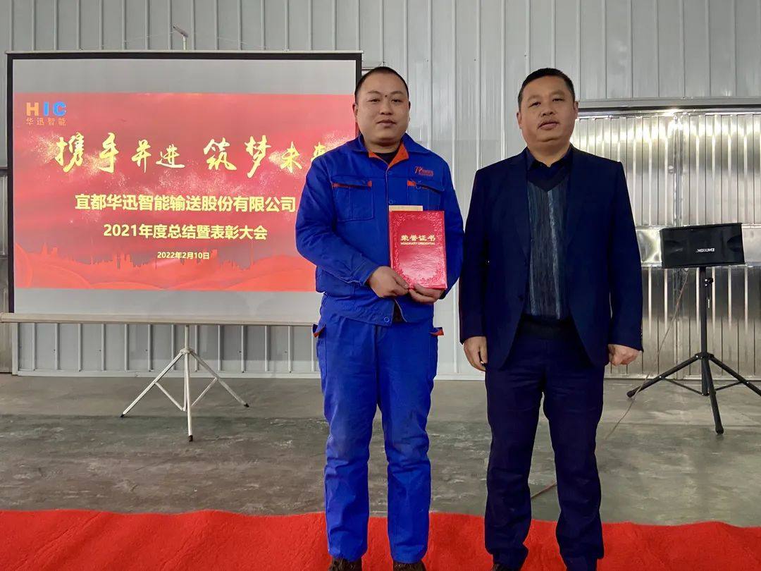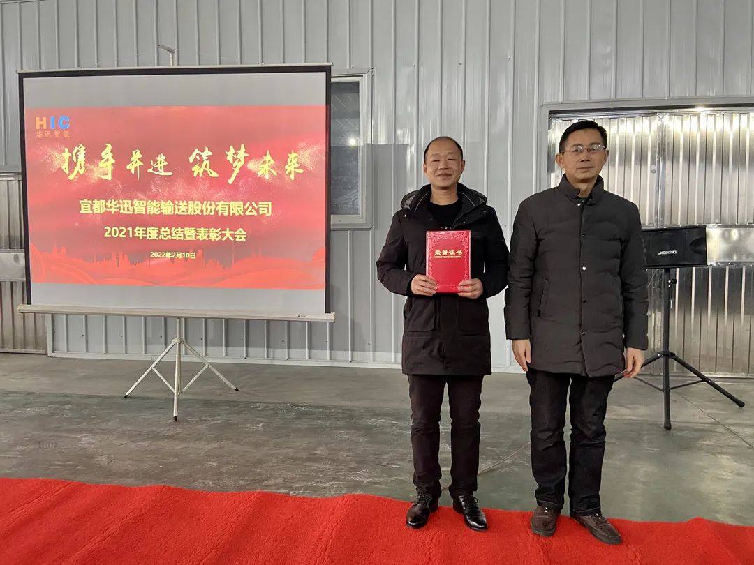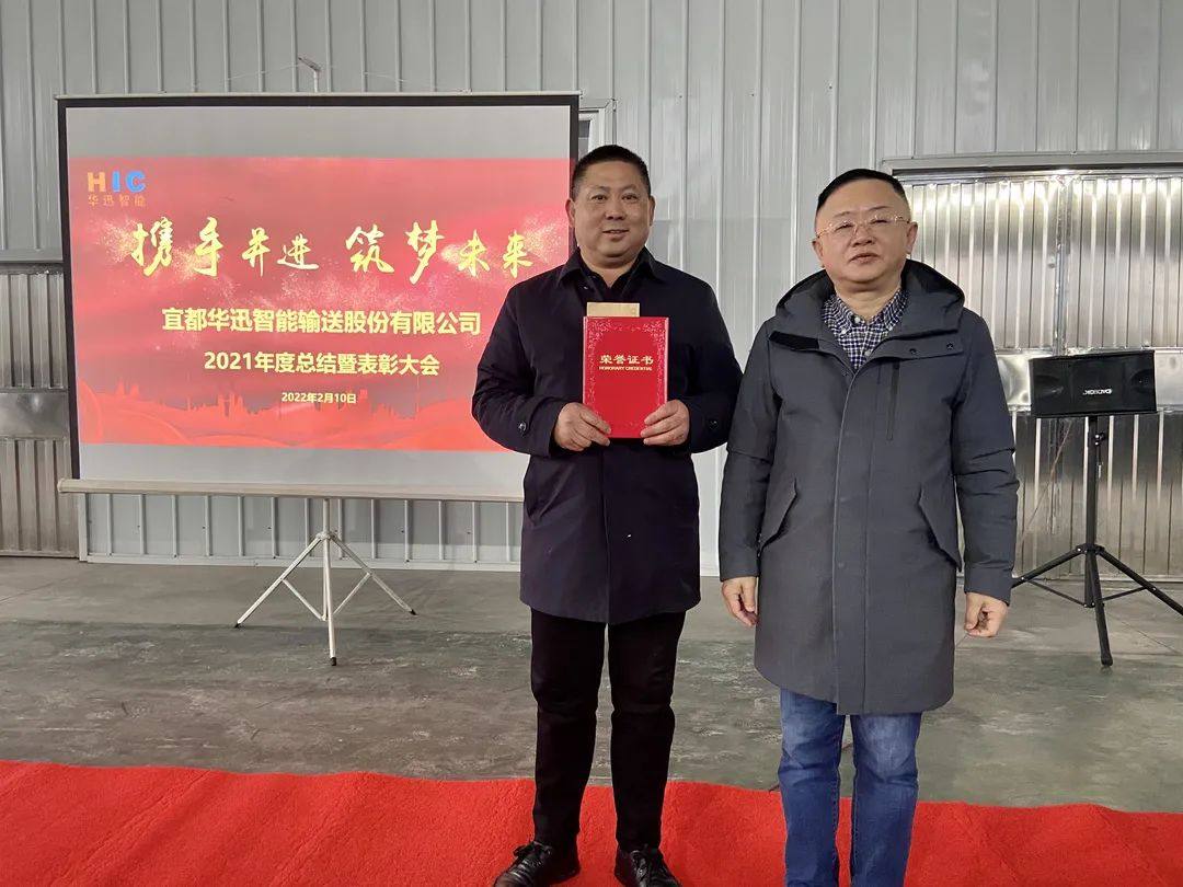 金牛辭歲,福虎生威。2月10日上午,宜都華迅公司在生產(chǎn)基地召開2021年度表彰大會。會上回顧了2021年宜都華迅取得的發(fā)展成果,表彰了2021年度為公司發(fā)展做出突出貢獻的員工,并就2022年重點工作進行部署。