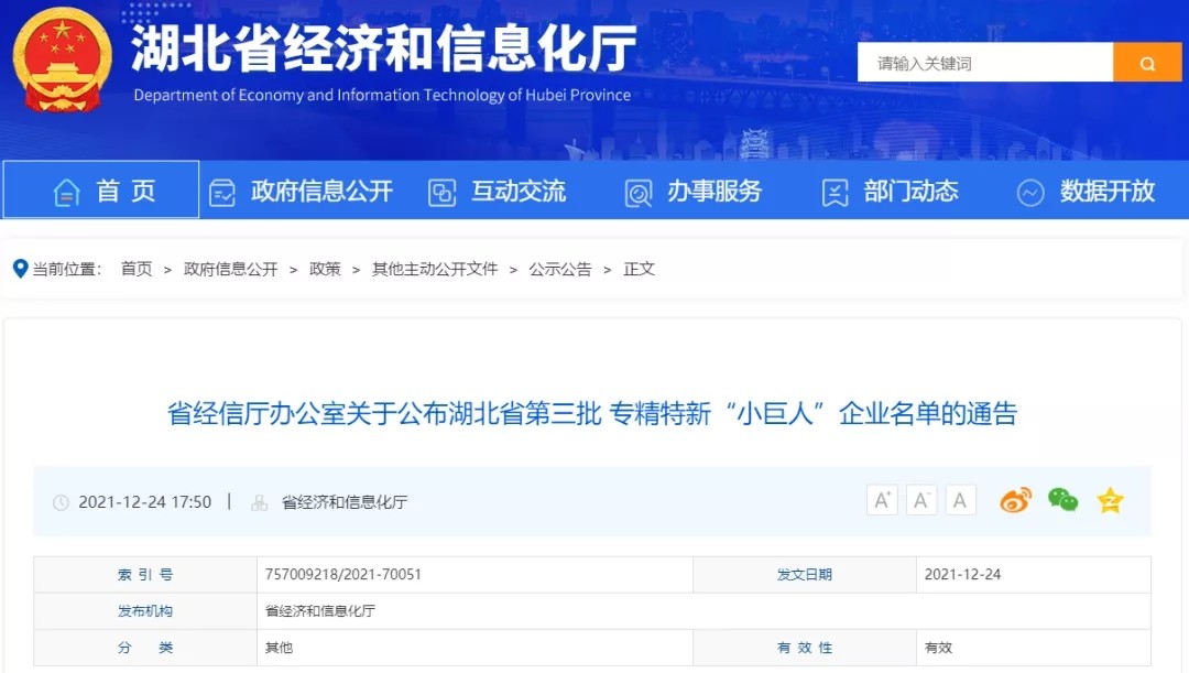 近日,湖北省經(jīng)濟和信息化廳對湖北省第三批專精特新“小巨人”企業(yè)名單進行通告,宜都華迅智能輸送股份有限公司入圍上榜。